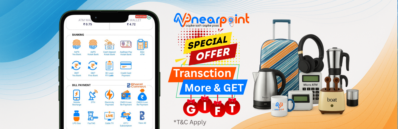 Near Point is a govt. registered company. specially we provide nsdl and uti pan card service and mobile & dth recharge, bill payment, dmt, aeps, m-atm through our website.also we provide many type of legal service . our business area is all over india.our all customer’s are valuable to us. we are happy to serve them better.to get better service get connect with us.